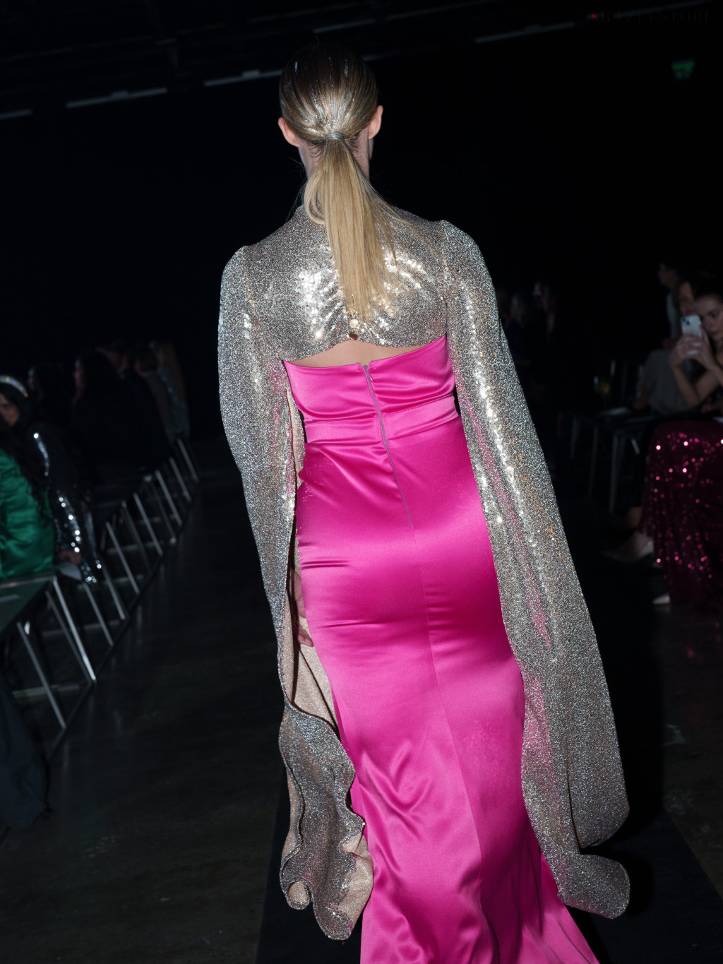 Marilyn ruha egy magenta színű pántnélküli, szatén maxi ruha, amely szűk szabásával és derékban szabott vonalaival azonnal a figyelem középpontjába helyezi viselőjét.