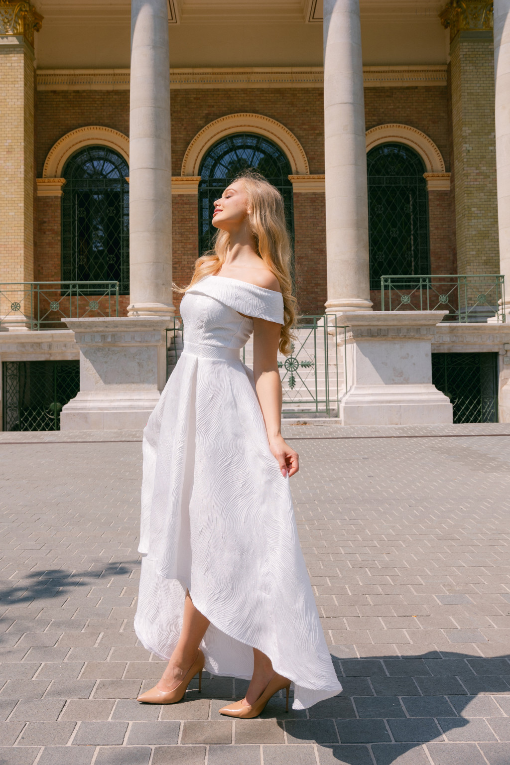 Ez a ruha ideális esküvői átöltözős ruhának, polgári szertartásra vagy bármely ünnepi eseményre, ahol a harmónia és az elegancia kiemelten fontos. Engedd, hogy a Boundless ruha a könnyedség és a stílus tökéletes egyensúlyát hozza el számodra, miközben minden tekintetet magadra vonzol!