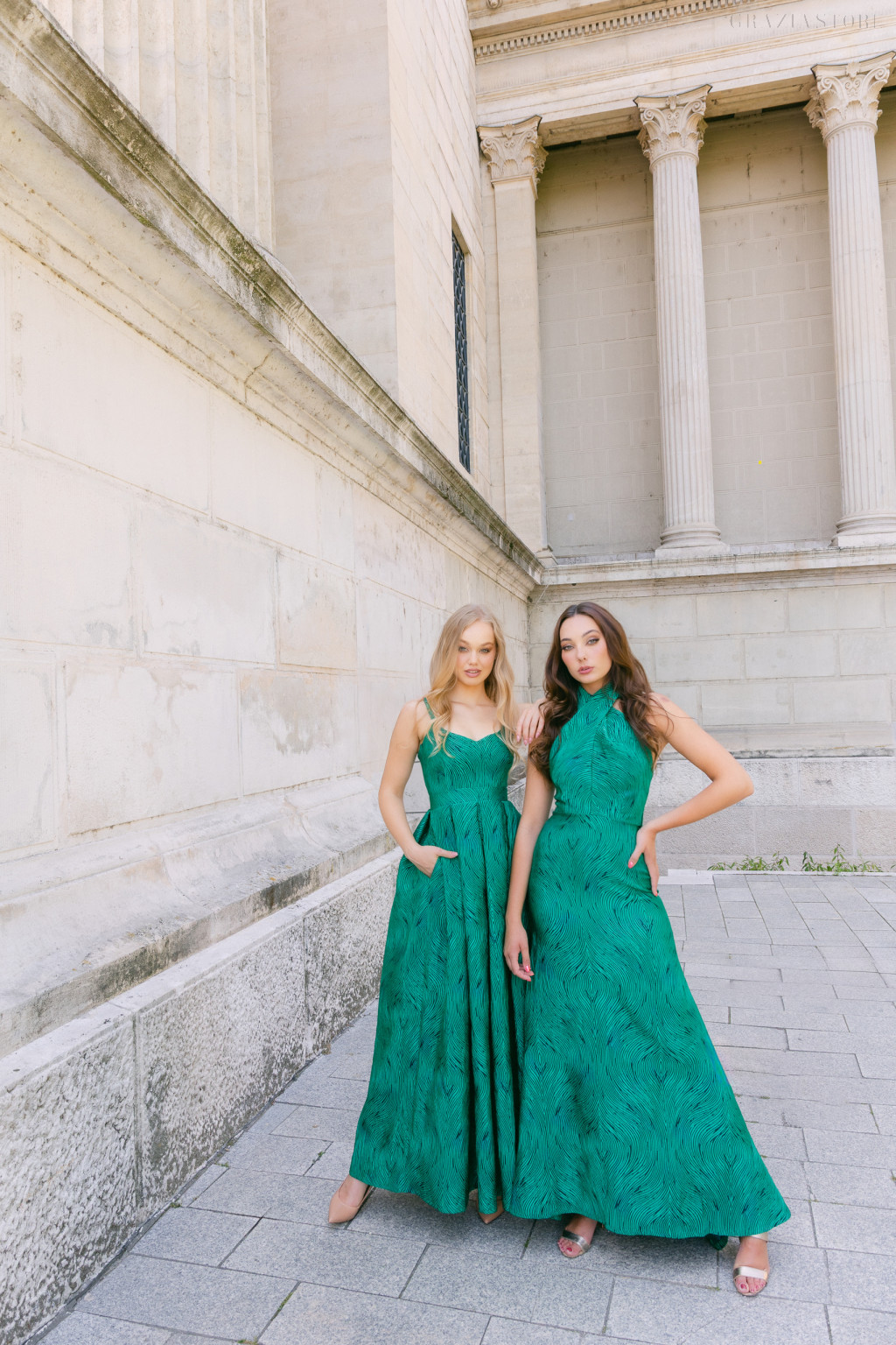 Az A-vonalú, többrakásos szoknya áramló, könnyed mozgást ad, miközben a rakások dinamizmust és eleganciát sugároznak. Ez a nőies, maxi alkalmi ruha tökéletes választás esküvőkre, estélyekre vagy bármilyen különleges alkalomra, ahol a stílus és a harmónia számít.