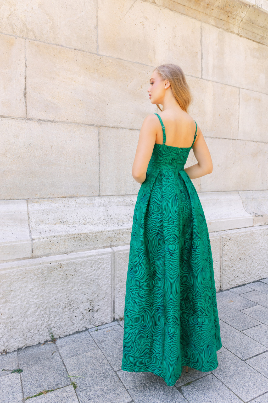 Az A-vonalú, többrakásos szoknya áramló, könnyed mozgást ad, miközben a rakások dinamizmust és eleganciát sugároznak. Ez a nőies, maxi alkalmi ruha tökéletes választás esküvőkre, estélyekre vagy bármilyen különleges alkalomra, ahol a stílus és a harmónia számít.