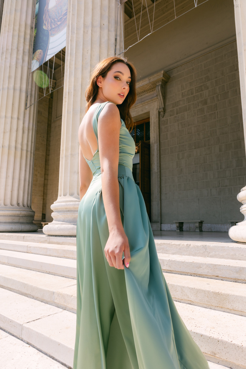 A zsályazöld szín különlegessége abban rejlik, hogy egyszerre nyugtató és elegáns, finom természetességével kiemeli a nőies vonalakat, miközben friss, modern alternatívát kínál a klasszikus alkalmi árnyalatok mellett.