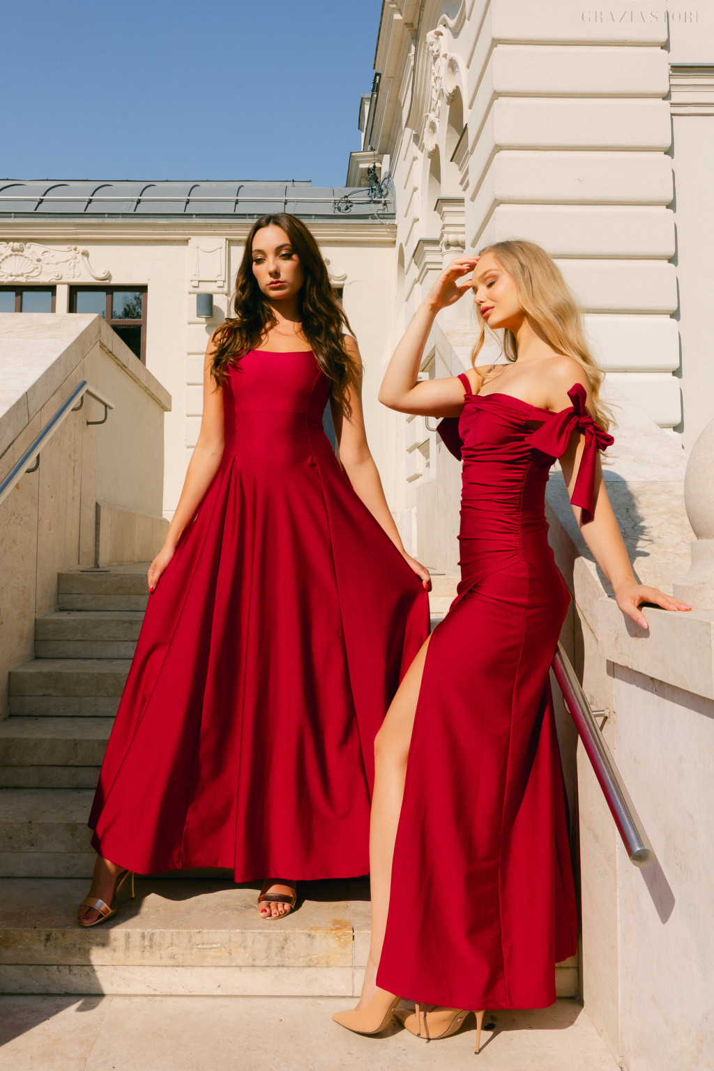 Az elasztikus anyag rugalmassága kényelmet ad, a bordó árnyalat pedig gazdagságot és kifinomultságot sugároz. Ez a letisztult, elegáns maxi ruha ideális választás esküvőkre, bálokra vagy bármely alkalomra, ahol a stílus és a kényelem tökéletes összhangja a cél.